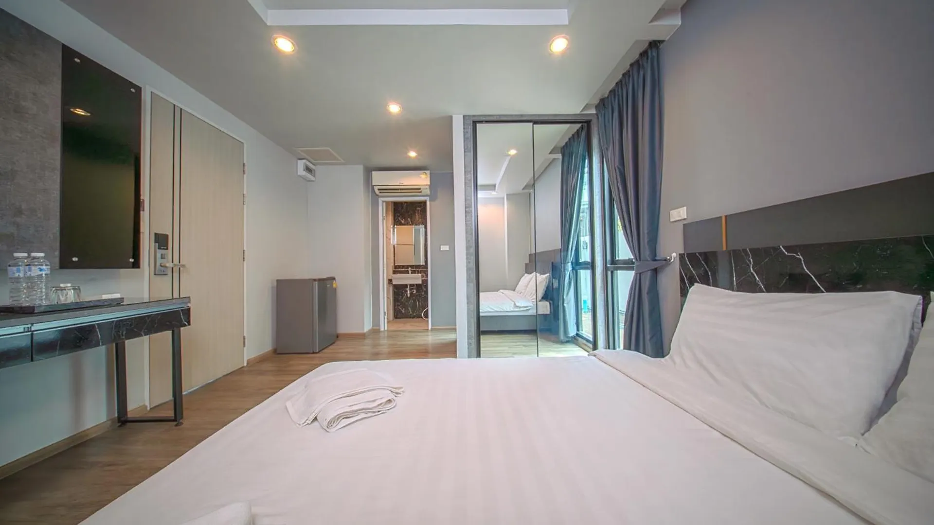 Le camere offrono un balcone, con uno scrittoio per il comfort degli ospiti. I bagni dispongono di un bagno con WC separato e una doccia e certe comodità, come asciugacapelli e asciugamani.